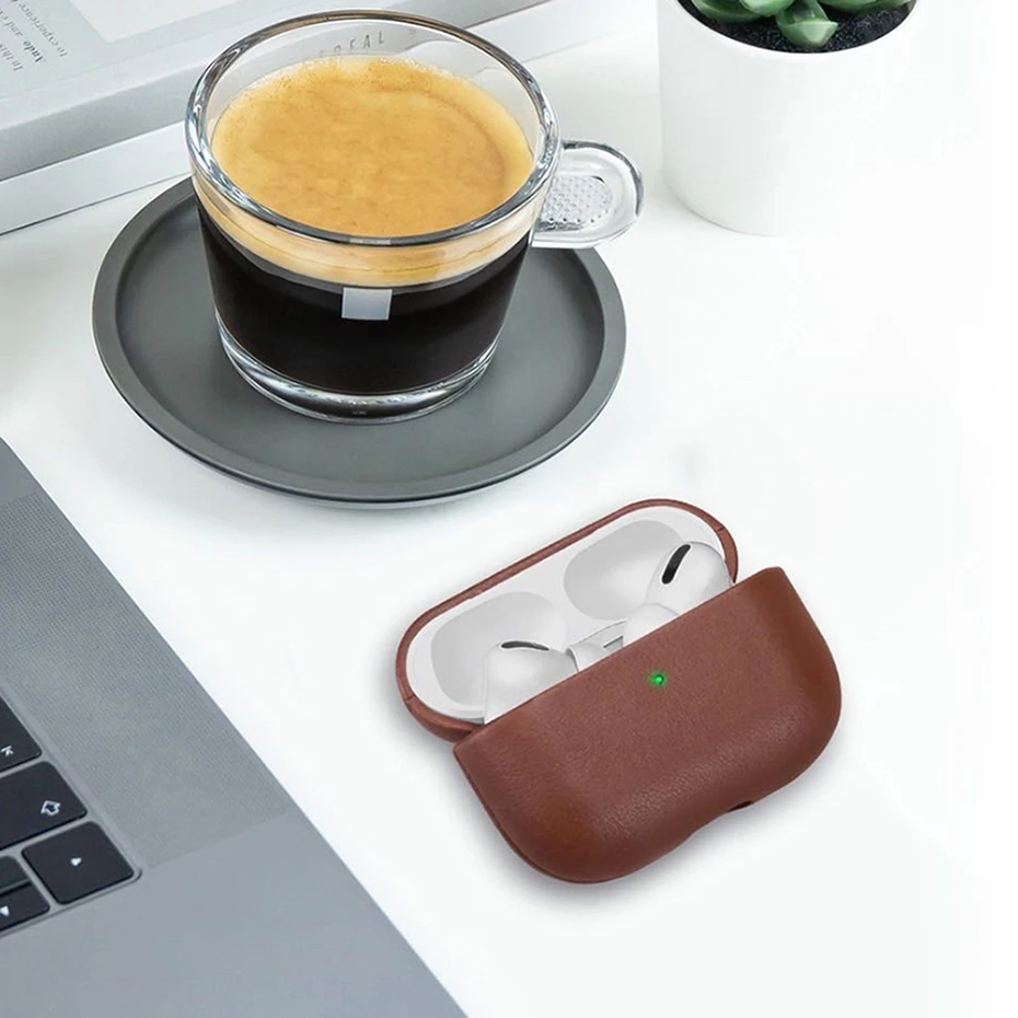 Защита от падения: амортизирующий кожаный чехол рассеивает энергию на удар, обеспечивая защиту от падения для ваших Airpods Pro без навалов.