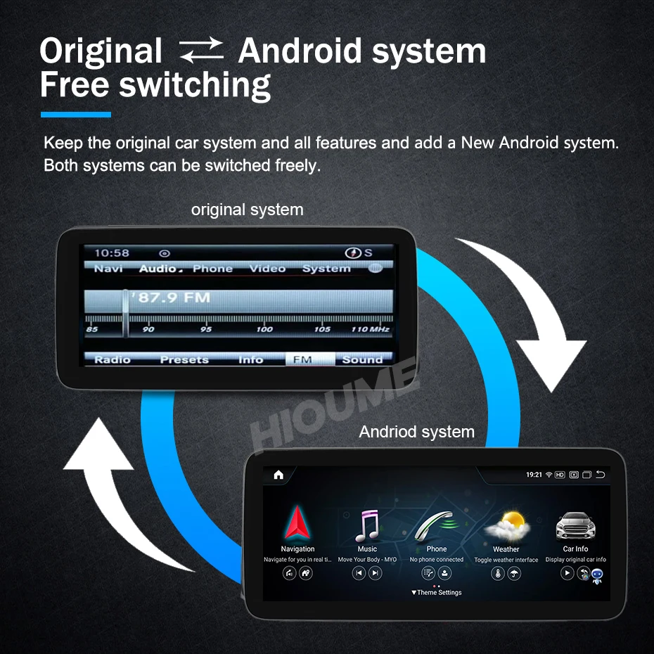 > Сохраните оригинальную автомобильную систему и все функции и добавьте новую систему android в свой автомобиль. Обе системы можно переключать свободно.
