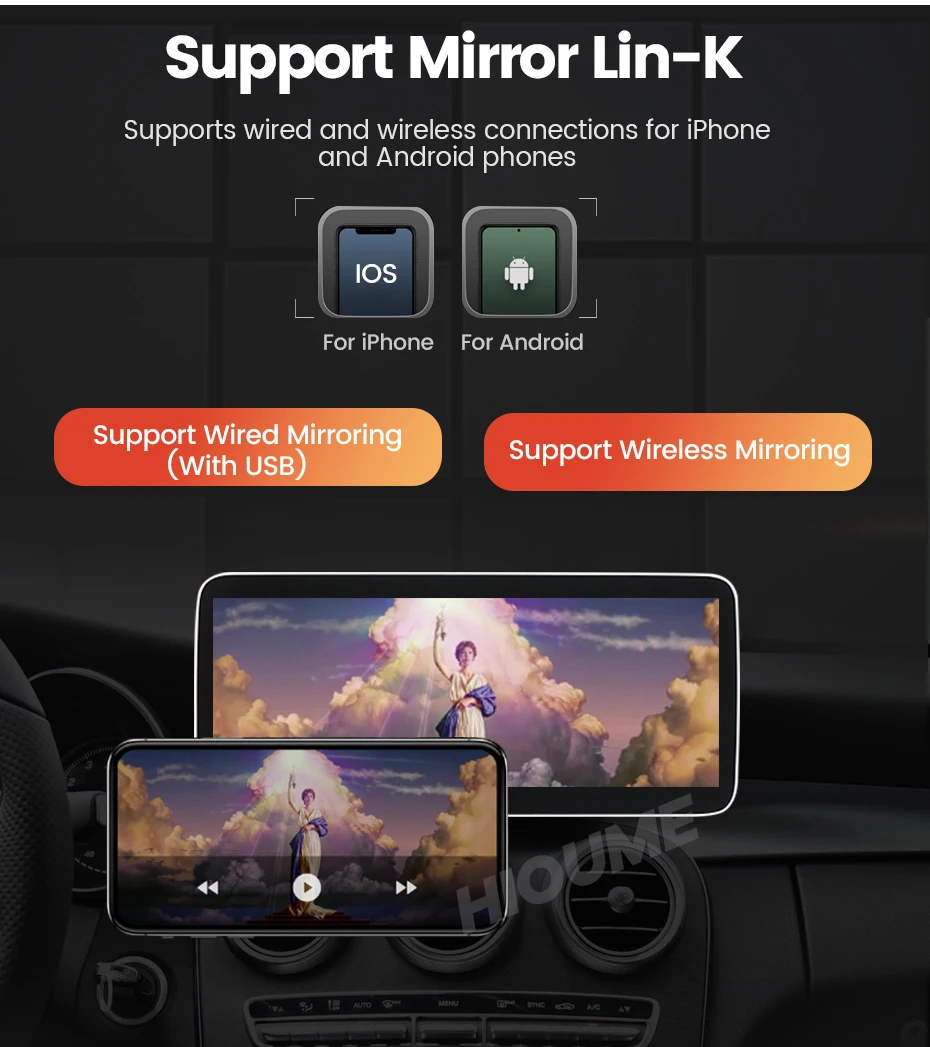 > Поддерживает беспроводную и проводную зеркальную связь для телефонов iPhone или android.