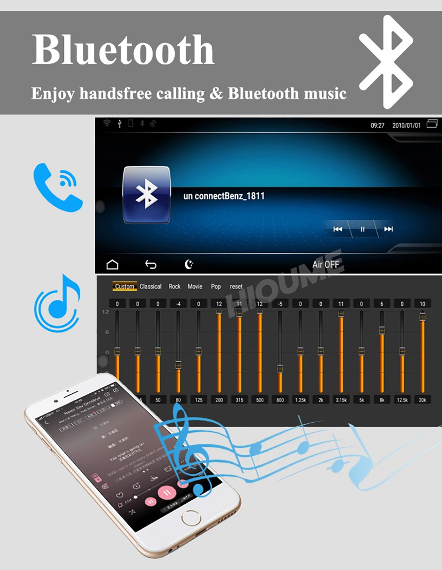 > Встроенный Bluetooth, поддерживает синхронизацию телефонной книги, звонки без рук и Потоковую передачу музыки с вашего телефона, возможность передавать Spotify и Pandora с вашего телефона через Bluetooth, чтобы наслаждаться миллионов песен, которые вам нравятся.