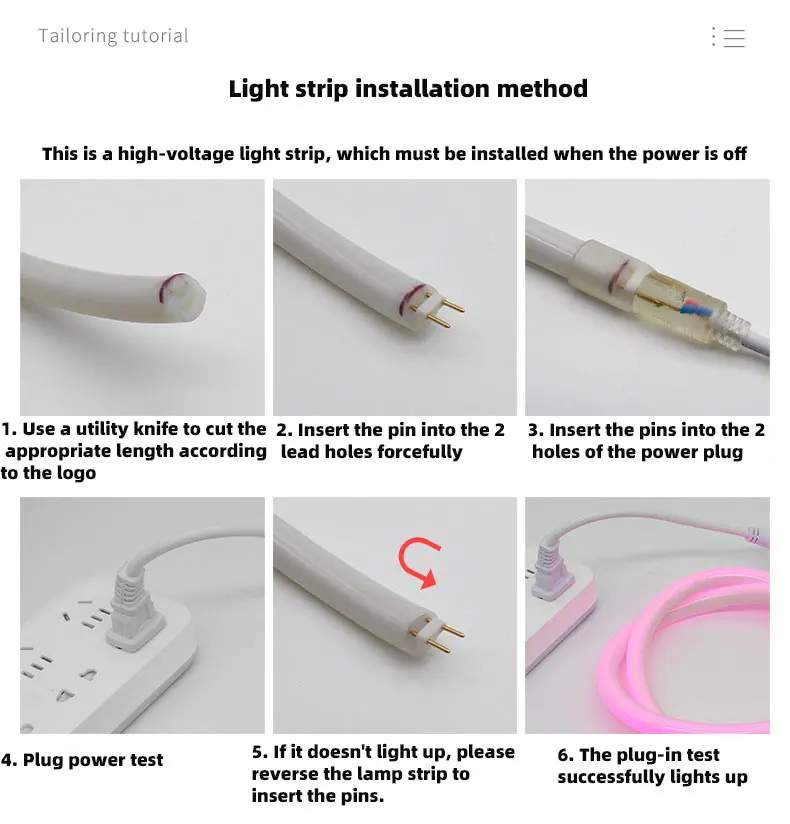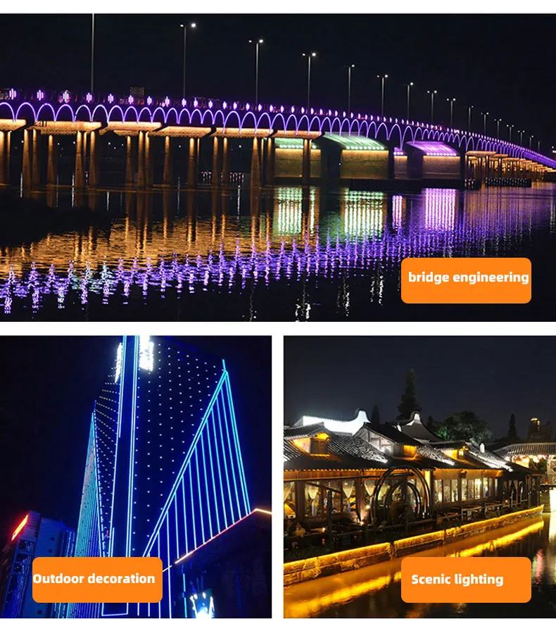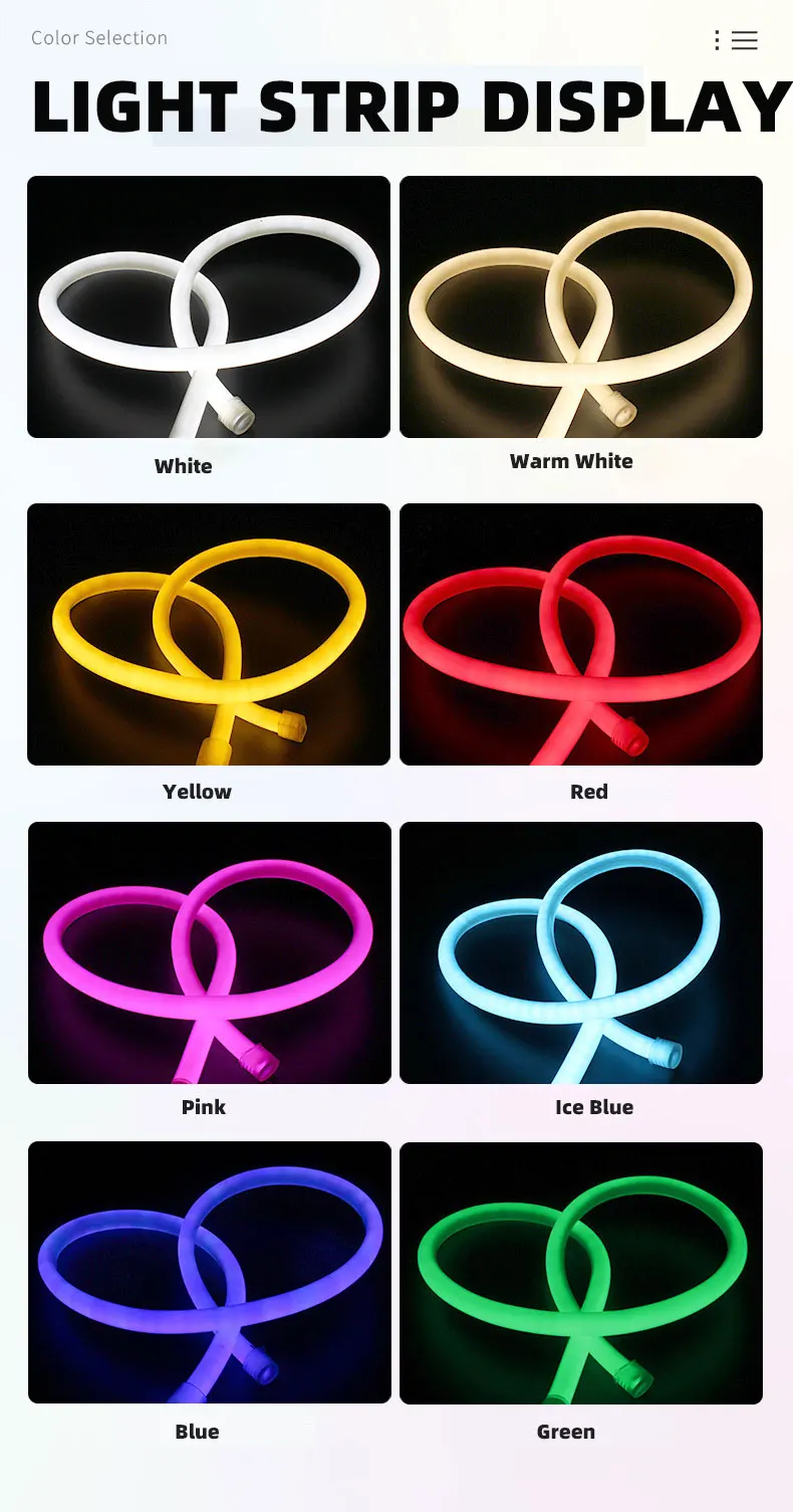 1. Неоновый светодиодный светильник 360 °: Улучшенный неоновый светодиодный светильник с полным видением на 360 градусов, идеальный светильник для контуров конструкции, таких как крыши, окна, двери, витрины и навесы. Отлично подходит для украшения дома и сада. 2. Гибкий и резной: неоновый светильник может быть в форме, образован или Согнут под любым углом. Его можно разрезать каждые 1 м, не повреждая остальные полоски. 3. Экологичность: без брызг и УФ, без ртути и без повреждений для человека и окружающей среды.