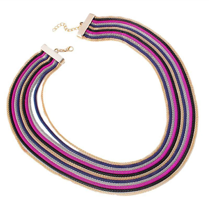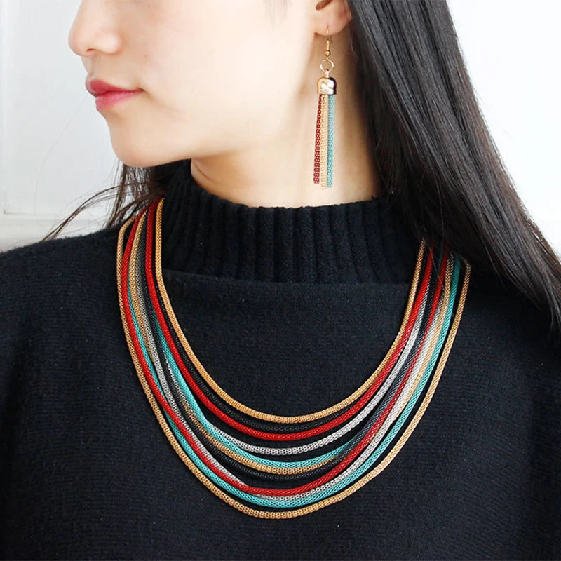 Women Fashion Multi-layer Sweater Chains Pendant Long Colorful Elastic Necklace