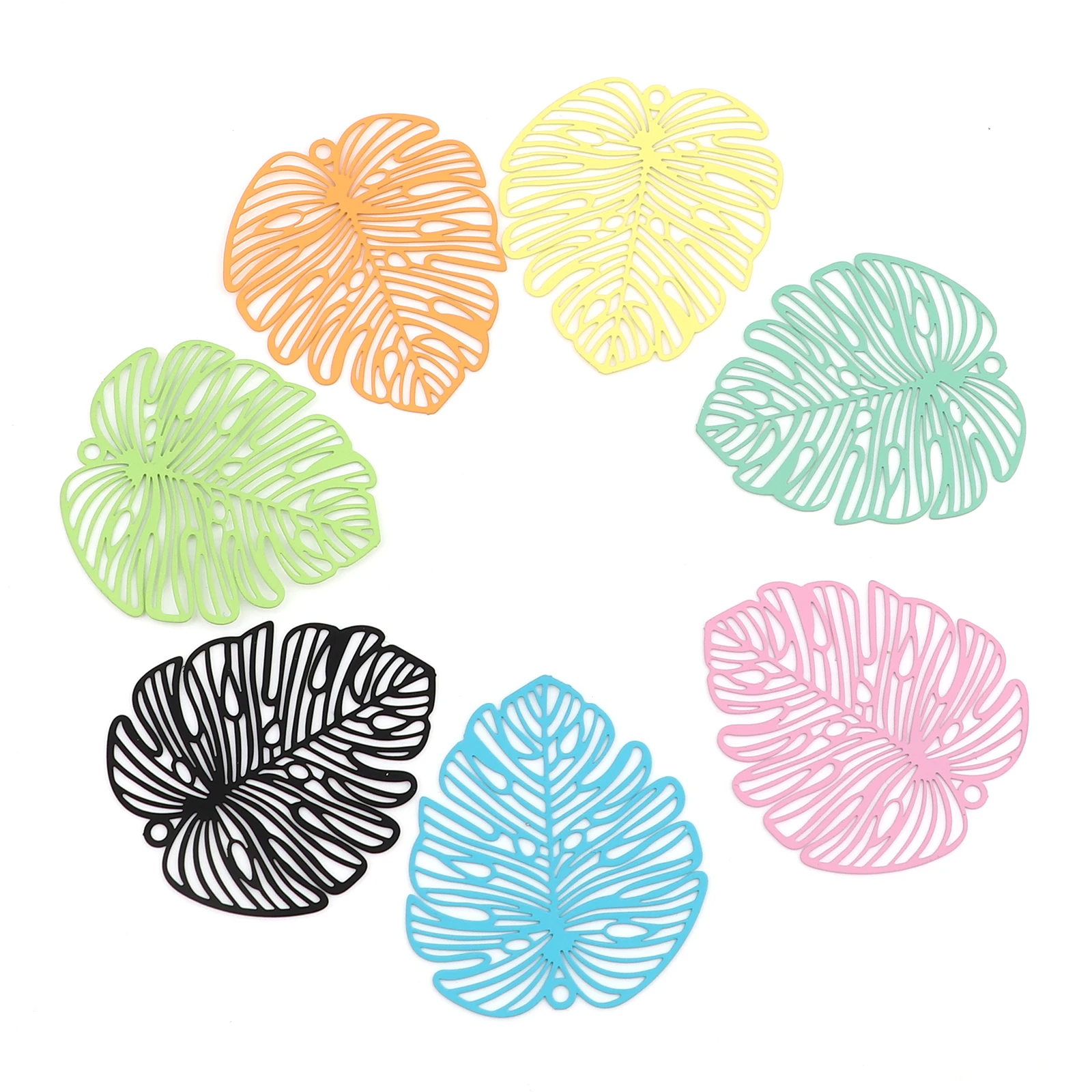 5 шт., листья монстеры, Железный сплав, Филигранное тиснение, подвески, полые листья растений, Подвески для DIY серег, ручная работа