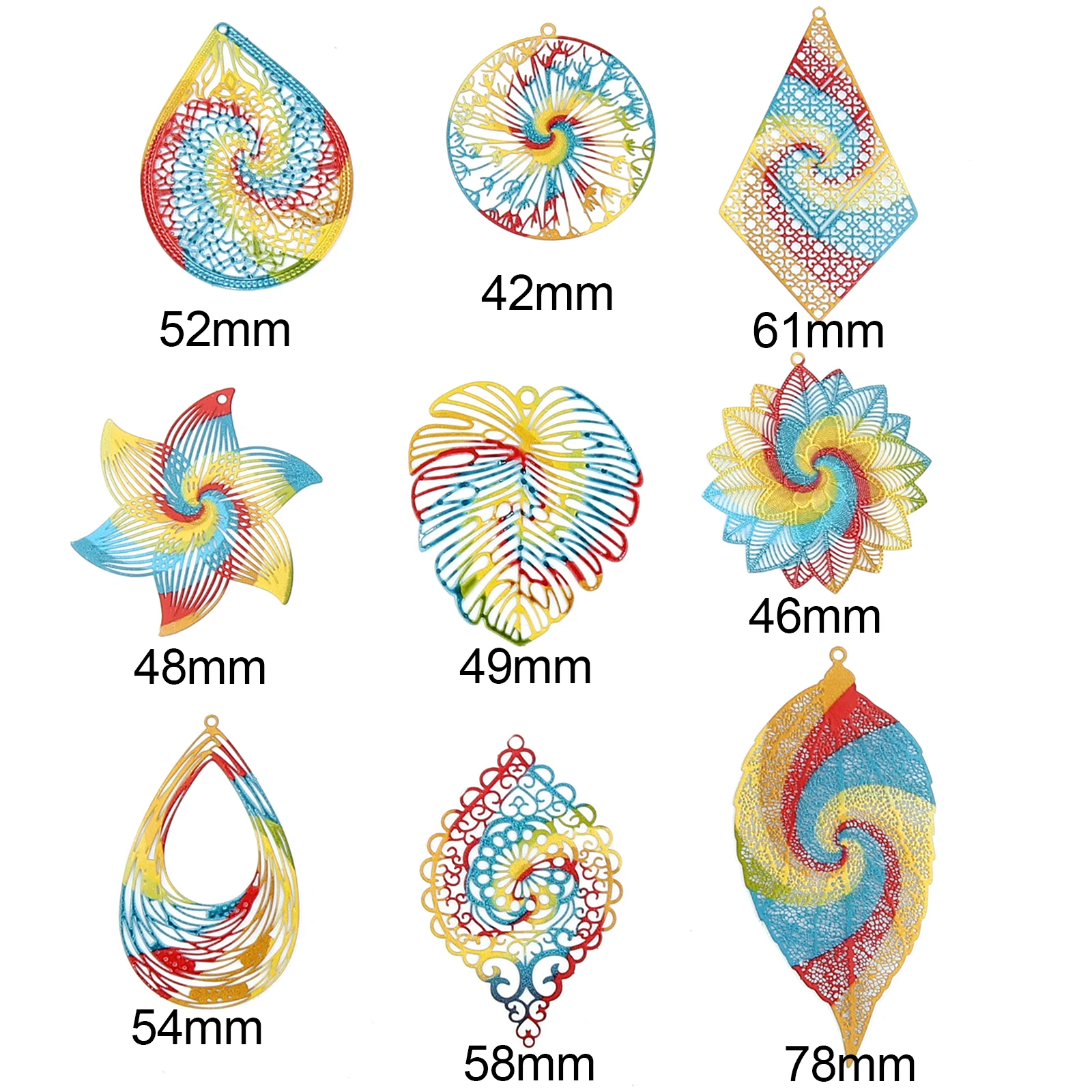 5 шт. радужные вихревые железные сплавы Филигранное тиснение Подвески полые многоцветные Филигранное тиснение s Подвески для изготовления серег своими руками