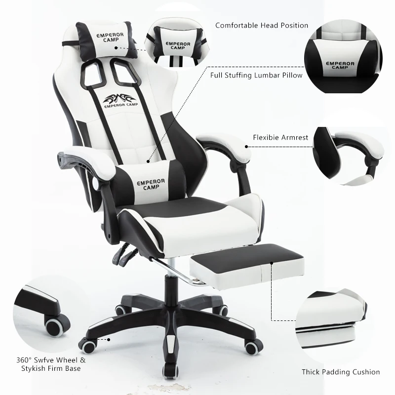 【Высокое качество материалов 】премиум из искусственной кожи, ПК игровой стул мягкий на ощупь и легко чистится. Крепкий и прочный 5 звезд предлагает Превосходная стабильность и долговечность, а также грузоподъемностью до 150 кг.