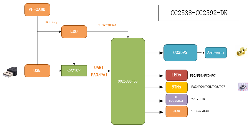 Совместим с CC2538-CC2592 набором оценочных модулей.