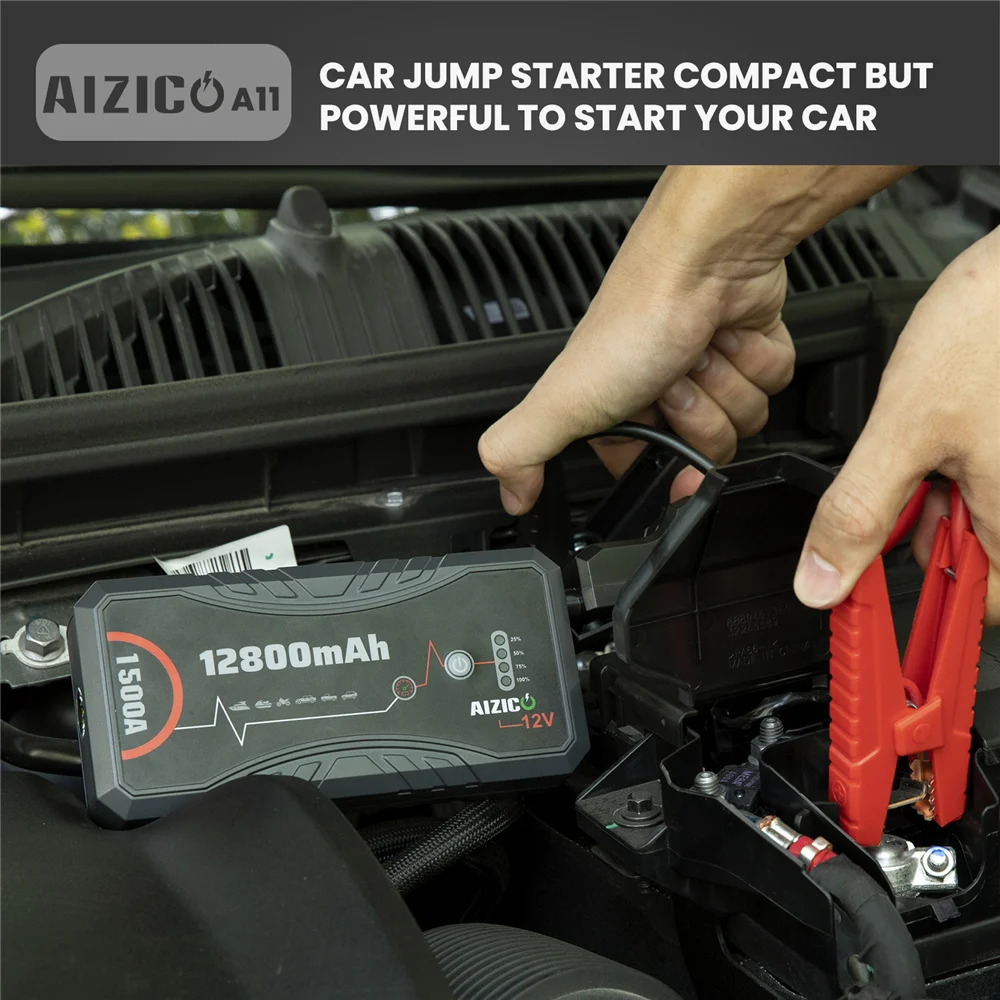 Более мощный усилитель: с 1500A пиковым током, AIZICO скачок стартер может начать все 7L бензиновые двигатели и 5.5L дизель, включая автомобили, грузовик, внедорожник, мотоцикл, ATV и лодка.