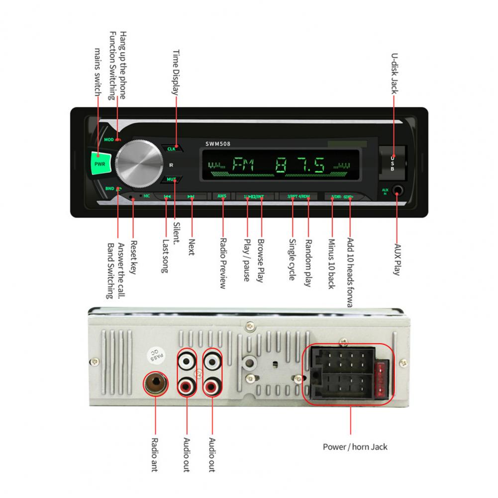 Надежный автомобильный FM-радиоплеер SWM-508, Bluetooth, гарнитура, 12 В, вставка для карты, аудио, mp3-плеер для автомобилей, автомобильные аксессуары