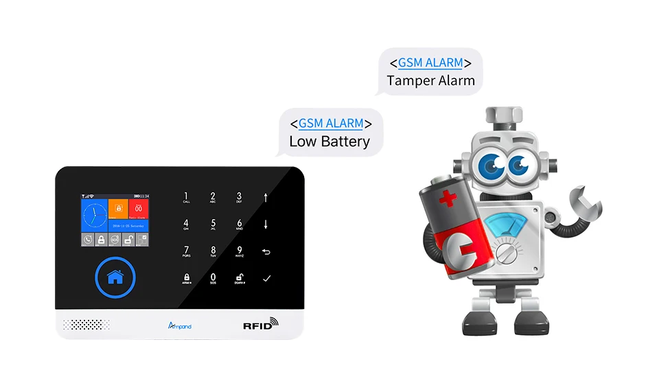 ● Частота: 433 МГц EV1527GSM ●Frequency: 850/900/1800/1900MHZBack-up ● Батарея: 3,7 V/500mAh ионно-литиевая Батарея