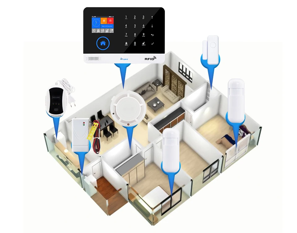 Работает с камерой, при случайном вторжении вы можете дистанционно контролировать ситуацию немедленно, говорить и ОТПУГИВАТЬ ВОРОВ.