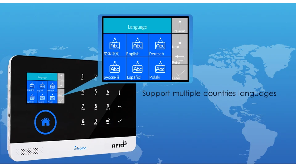 Настройте 2 RFID карты, поддержка 100 места обучения/хранения для пульта дистанционного управления, RFID карты и беспроводной детектор