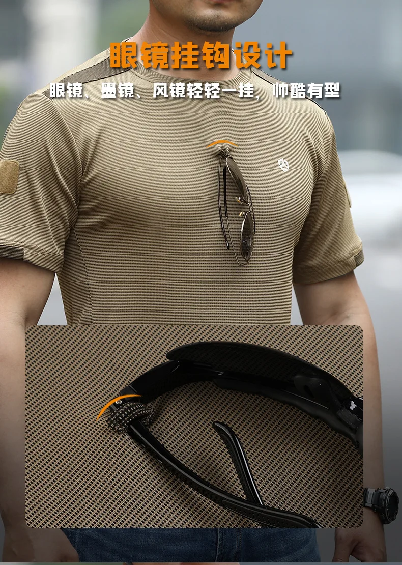 Summer Outdoor Quick Dry Short Sleeve T-shirt Men's Thin Breathable Sports Loose Army Fan Tactical T Shirt Tops
