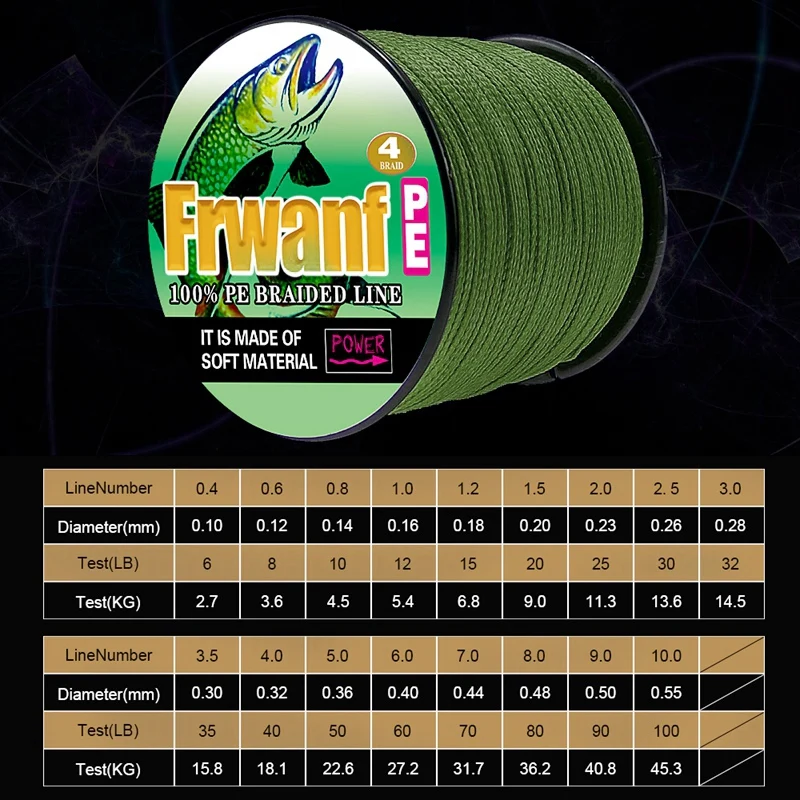 Frwanf PE плетеная леска 4 нити 100 м супер прочная многонитевая нить для ловли карпа 12 фунтов
