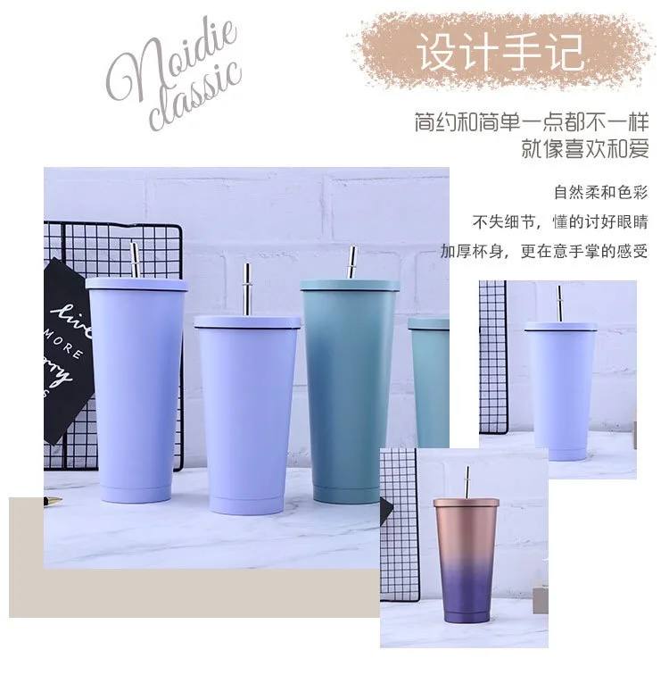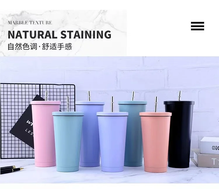 Новая горячая распродажа матовая отделка 750 мл 304 нержавеющая сталь соломенная чашка большая емкость вакуумная твердая цветная чашка для кофе стакан