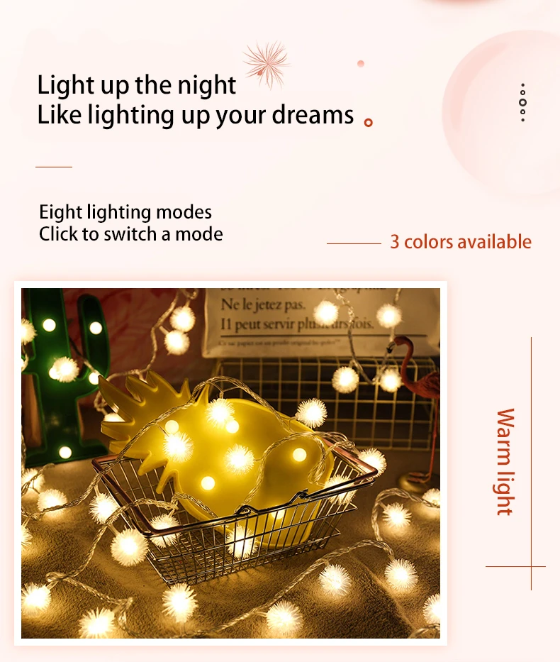 4.this energy saving solar string lights includes a rechargeable solar cell,with higher energy conversion rate, charging the light during the day for 6-8 hours can provide 8-14 hours lighting at night.