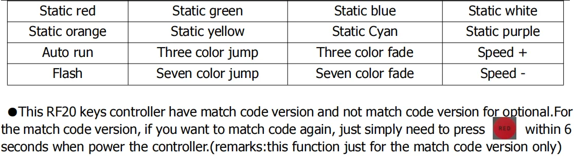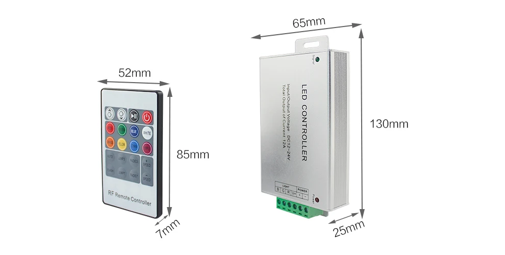 Алюминиевый РЧ 20 клавиш RGB контроллер принял усовершенствованный чип управления компьютером. Его в основном используется для управления светодиодный все виды в постоянное напряжение светодиодный свет, таких, как: светодиодный источник света, светодиодный полоски, светодиодный настенный светильник, настенные Стекло занавески и т. д. Он интегрирован с простым подключением, простыми манипуляциями и функцией отключения памяти. Пользователь может выбрать 7 цветов скачка, выцветание, режим fash, и яркость света регулируется в соответствии с фактическим требованием пользователя.