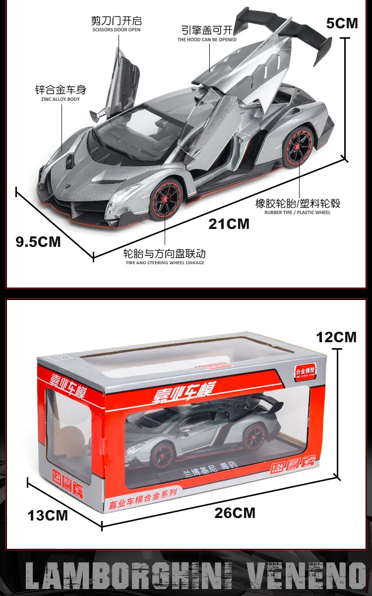 1:24 Lamborghini яд Veneno Модель автомобиля Моделирование спортивный автомобиль литой Сплав модель автомобиля для бойфренда Подарочная Коллекция украшения