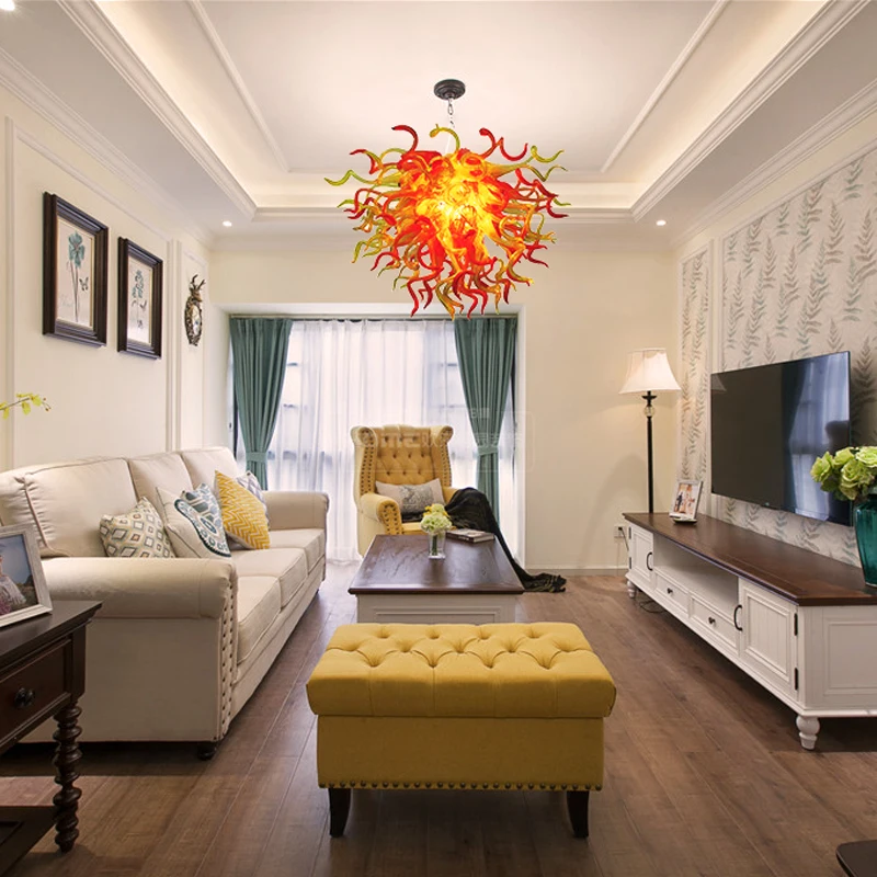 Горячая Распродажа, оранжевые цветные люстры, художественное освещение, ручная выдувная стеклянная люстра, светодиодные лампы для украшения спальни
