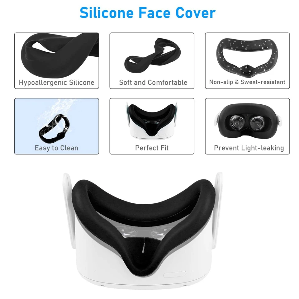 Надежный, удобный и прочный: наш чехол для лица виртуальной реальности Oculus Quest 2, аксессуары изготовлены из высококачественного силикона с защитой окружающей среды, благоприятного для кожи, против пота, увеличьте опыт и не оставите следов пота, защита от пота делает вас более комфортными продолжительные VR-сеансы.