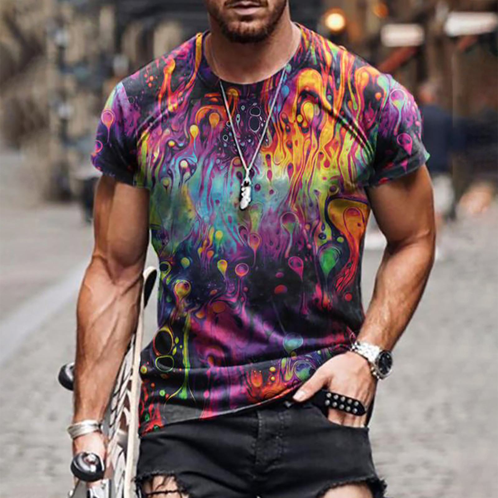 Мужская Летняя Повседневная футболка с 3D принтом, короткий рукав, круглый вырез, блузка
