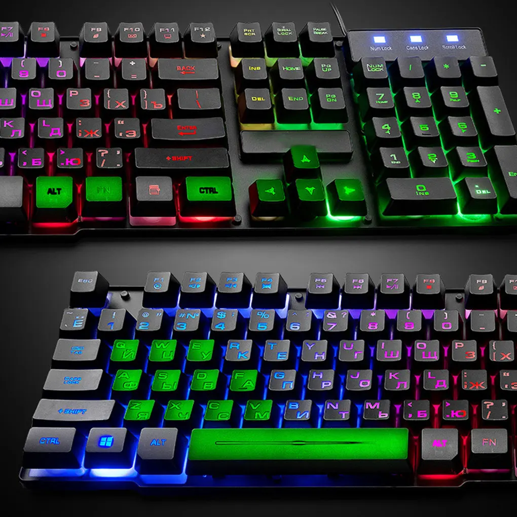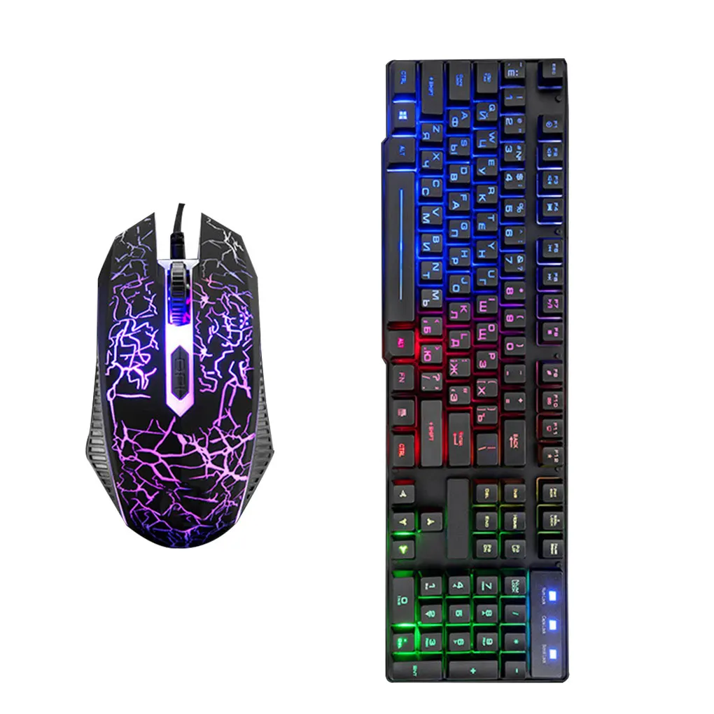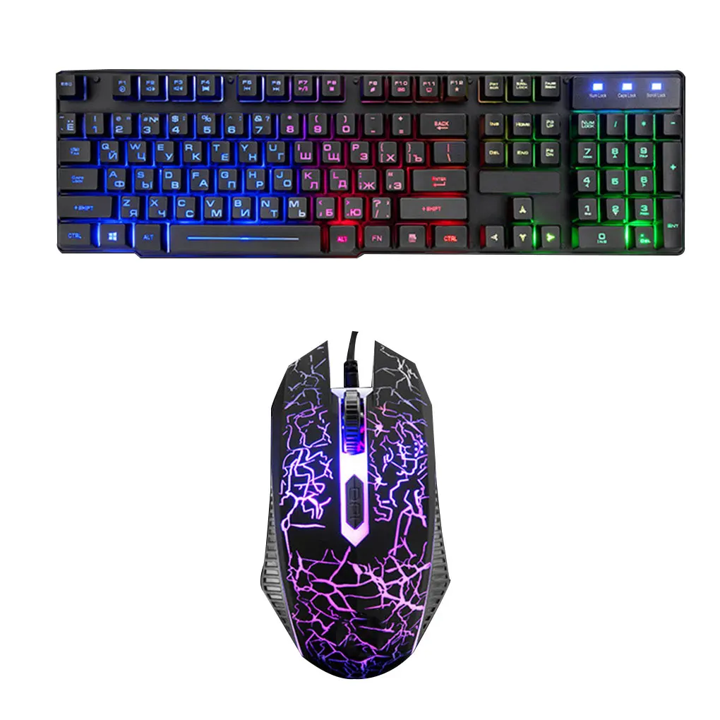 С подсветкой, проводная USB клавиатура и мышь комплект дает вам классный игровой опыт.