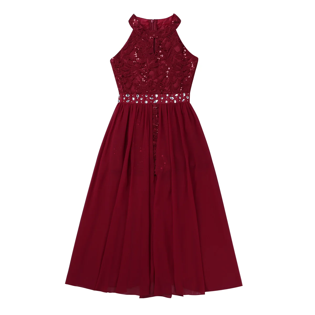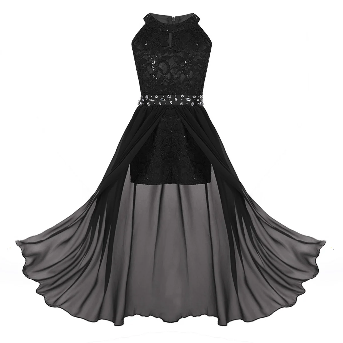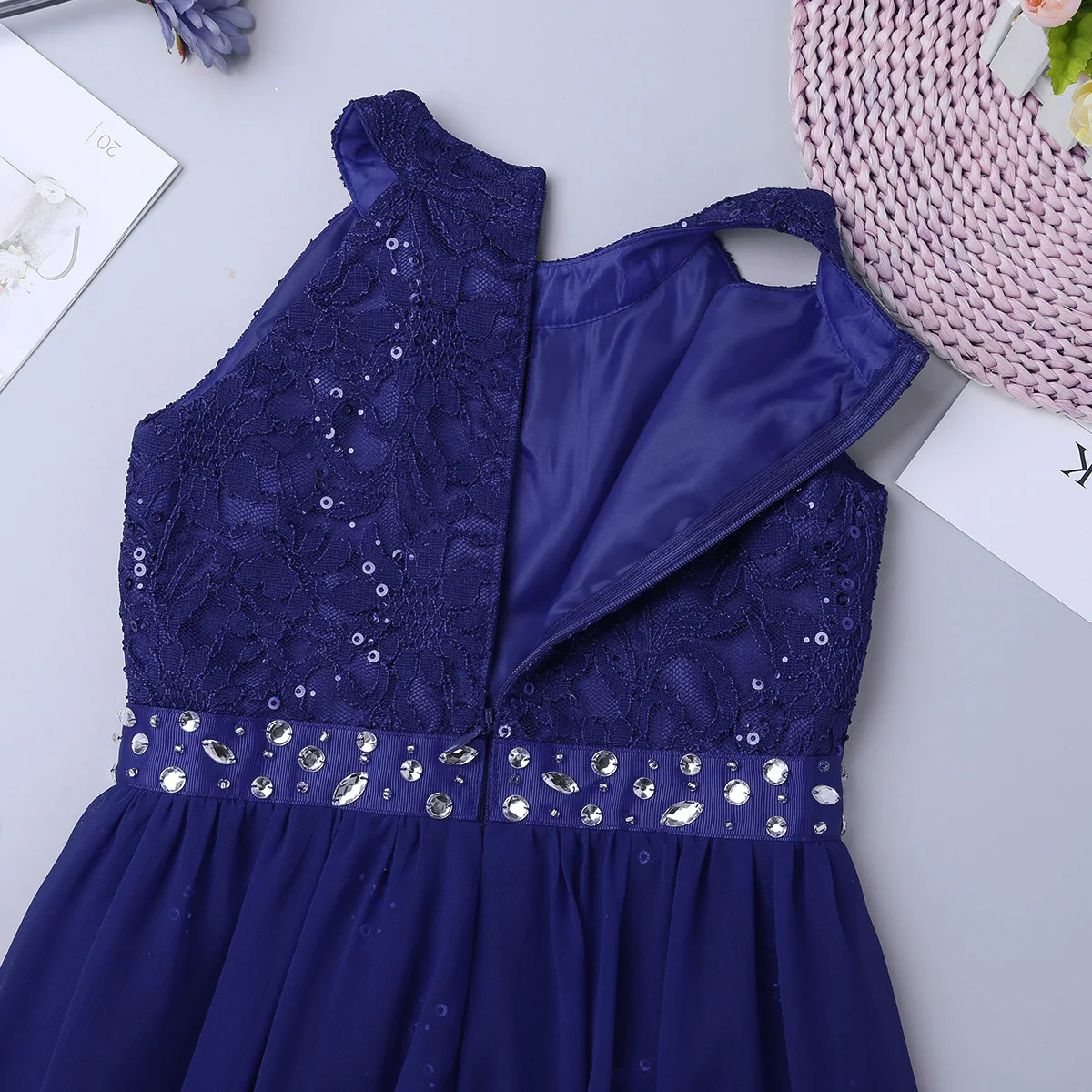 Платье без рукавов с круглым вырезом для девочек, кружевной топ с цветочным узором корсетом; С резинкой на стразы отделкой на талии. Скрытая молния сзади.