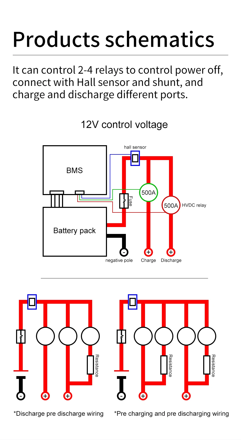 Он может управлять 2-4 реле для управления выключением питания, подключения к датчику холла и шунту, а также зарядки и разрядки различных портов.
