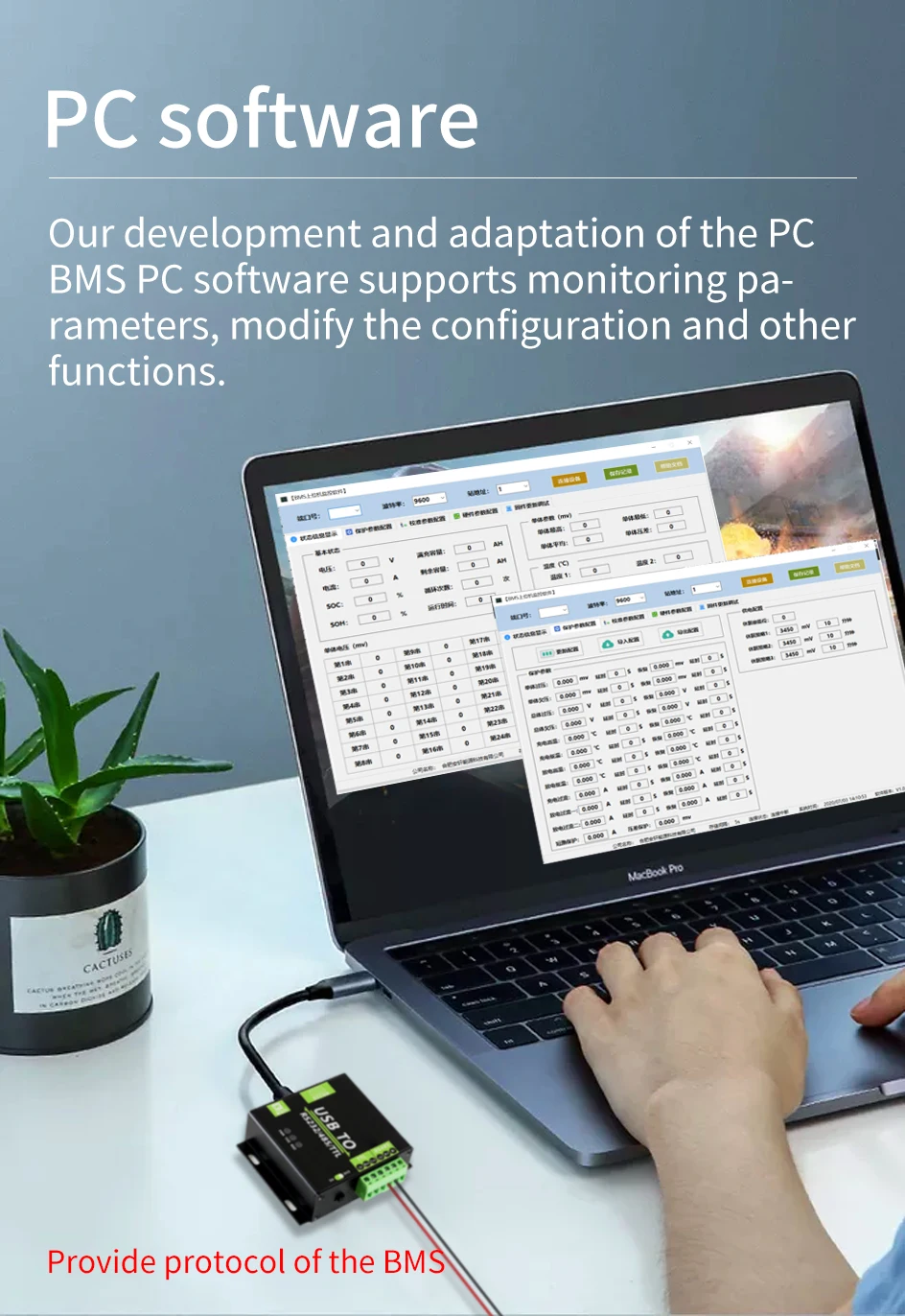 Наша разработка и адаптация программного обеспечения PC BMS PC поддерживает параметры мониторинга, изменение конфигурации и другие функции. Примечание: он должен использоваться с модулем UART или RS485 к USB. Пожалуйста, свяжитесь с нами для покупки, если вам это нужно.