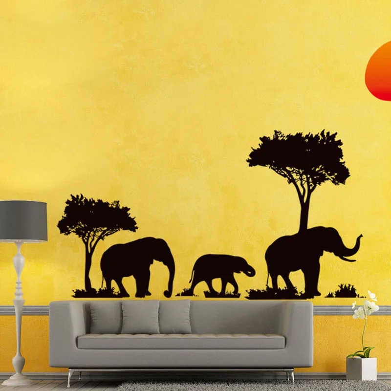 Добро пожаловать на нашу шею леса виниловая наклейка закат милый мультфильм наклейки на стену в виде слона спальня гостиная декоративные фрески