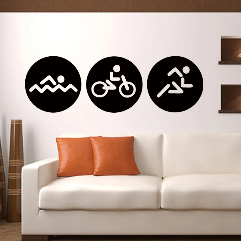 Новый стиль велосипедист езда на велосипеде плавать бег цвета Триатлон виниловые наклейки на стену домашний декор искусство фрески