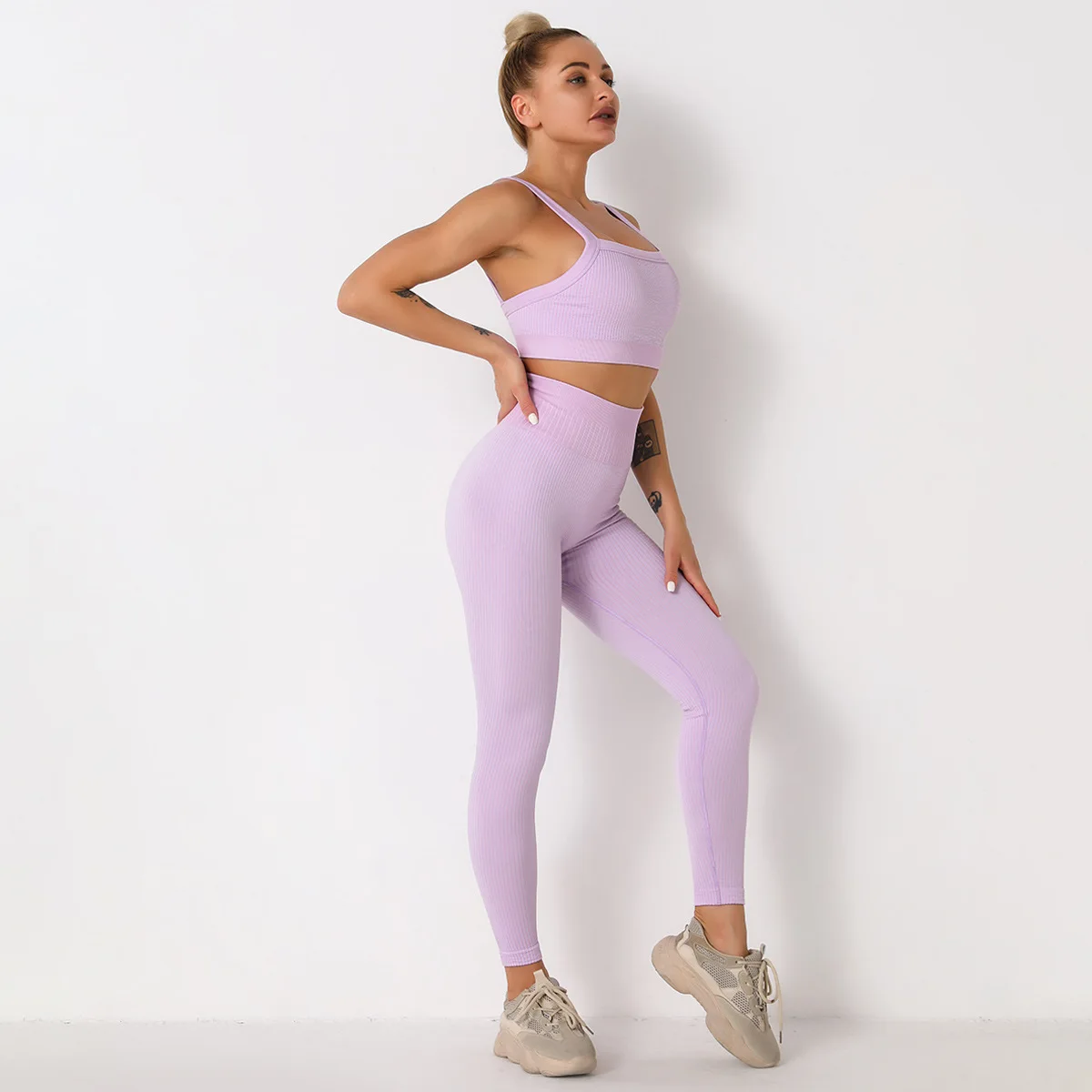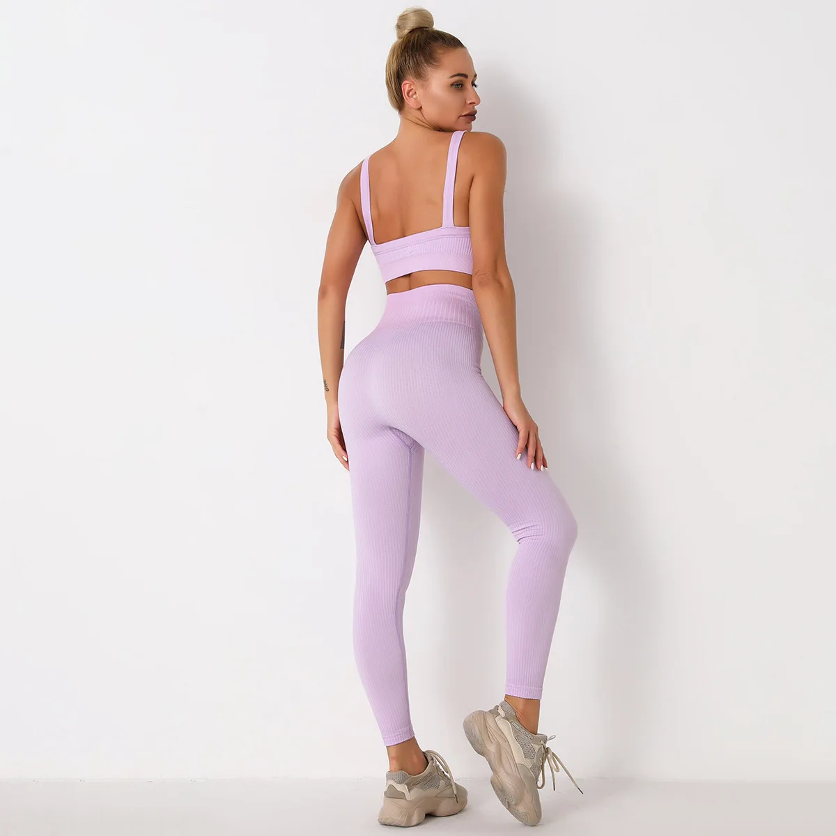 Высокая эластичность, ребристый бесшовный Набор для йоги, спортивная одежда для женщин, фитнес, бюстгальтер с открытой спиной, штаны, спортивные костюмы для бега, тренировки, летняя одежда