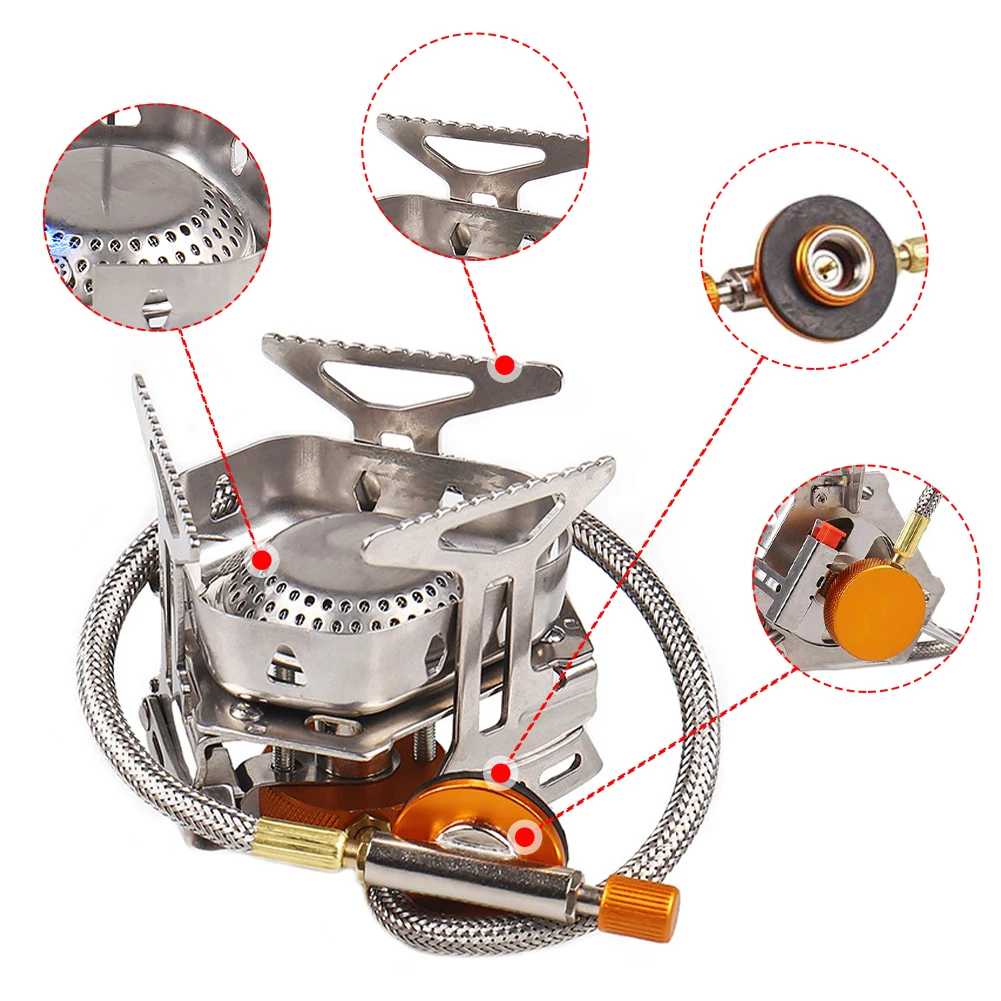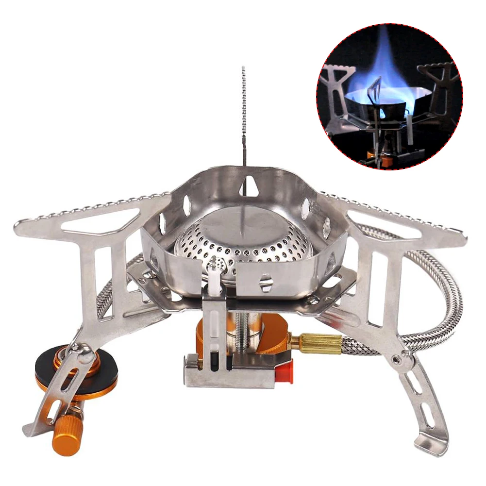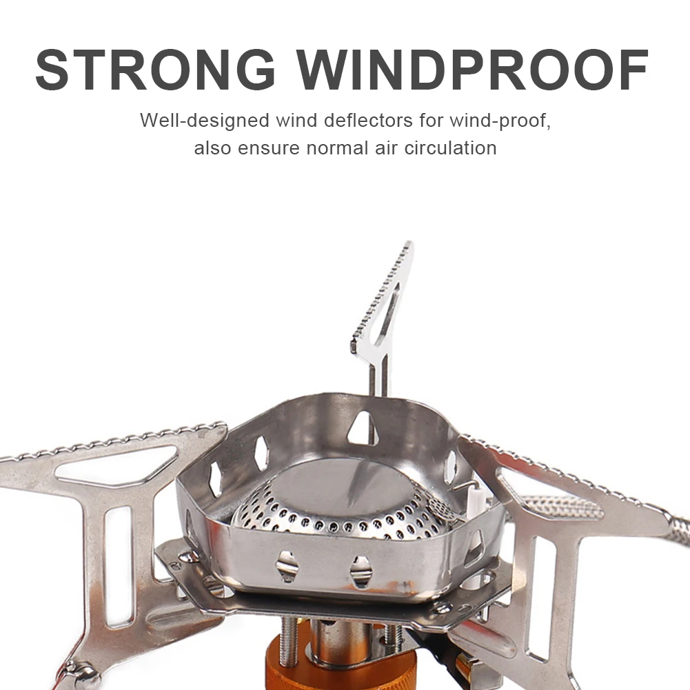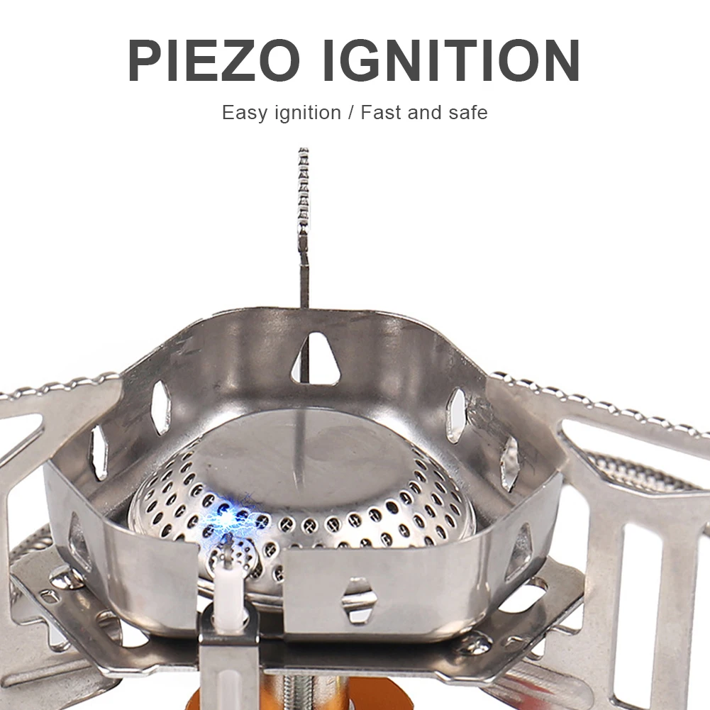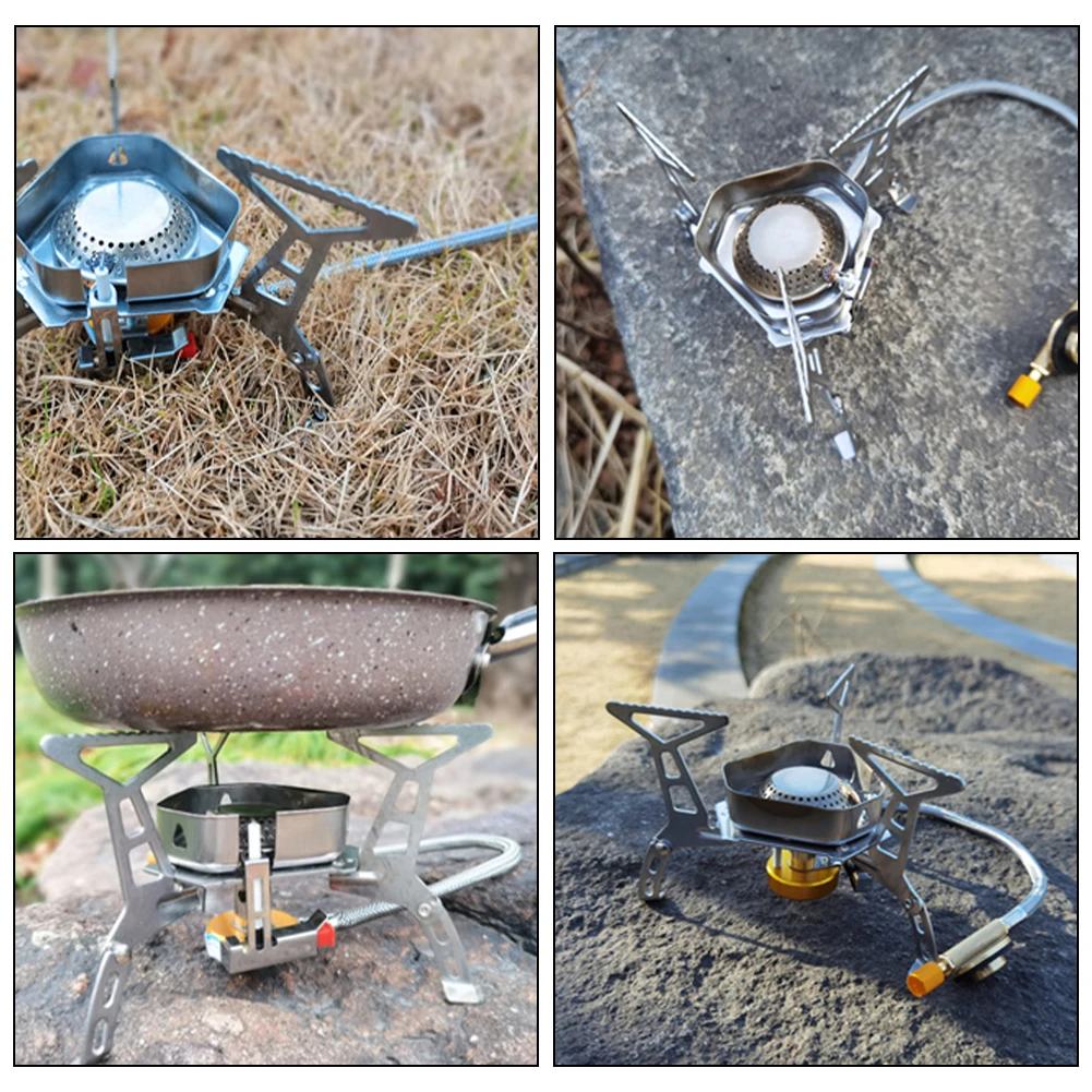 * 3. Ветрозащитная конструкция и пьезо-Зажигание: интегрированная конструкция ветровых дефлекторов может эффективно повысить эффективность нагрева печи. Просто ввинтите канистра и нажмите на переключатель зажигания, чтобы зажечь, никаких дополнительных кремень не требуется.
