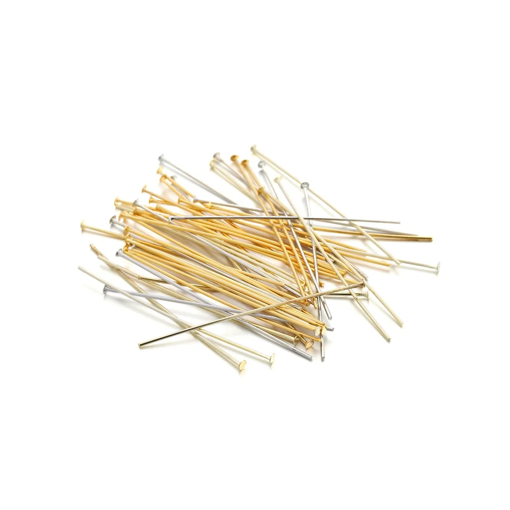 100 шт./лот 20 30 40 мм, настоящие Позолоченные булавки с плоской головкой, булавки для сережек «сделай сам», Ювелирная фурнитура, принадлежности для изготовления ювелирных изделий