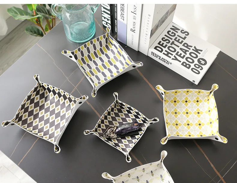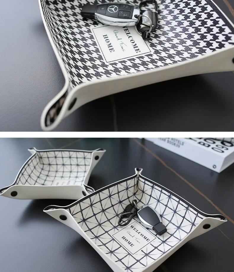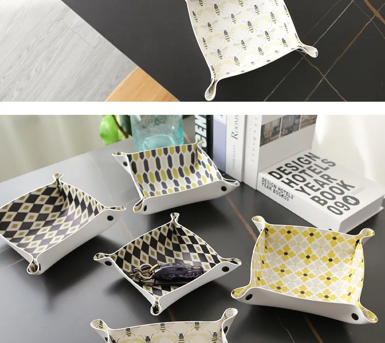 Настольный лоток для хранения из искусственной кожи, лоток для ключей, украшение для дома, кошелек для ключей в кости, складная коробка для хранения монет, коробка для хранения ювелирных изделий