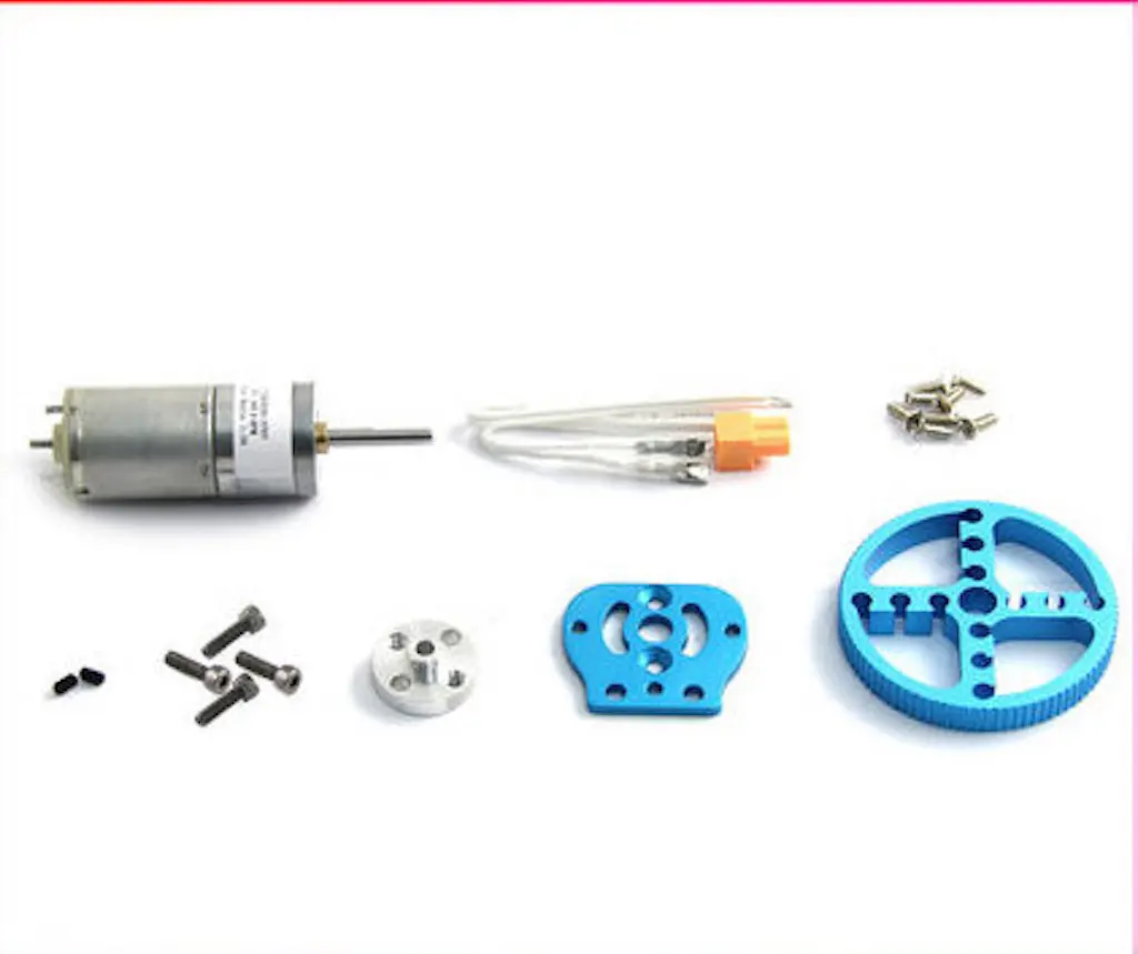 25 мм Диаметр DC металлический мотор-редуктор, вместе с кронштейном двигателя, соединителем вала и многоцелевым колесом. Входящее в комплект многофункциональное колесо может использоваться как синхронизатор, ступица колеса или колесо бака.