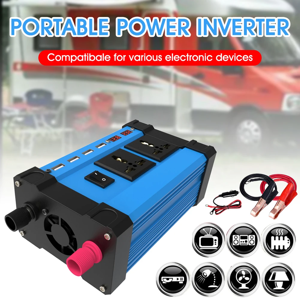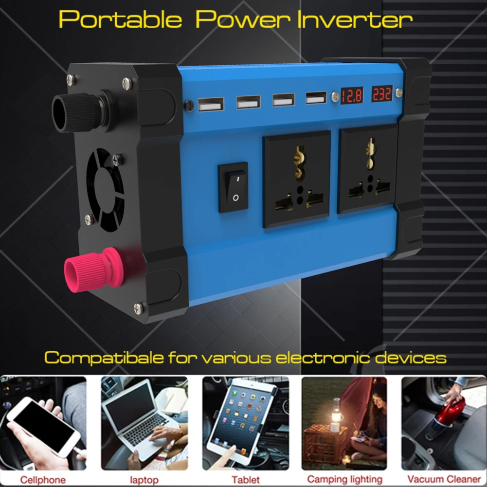 4000 Вт автомобильный инвертор, цифровой светодиодный дисплей, 12 В постоянного тока в переменный ток, 220 В/110 В, преобразователь с 2 гнездами переменного тока, 2 гнезда прикуривателя, 4 usb-порта