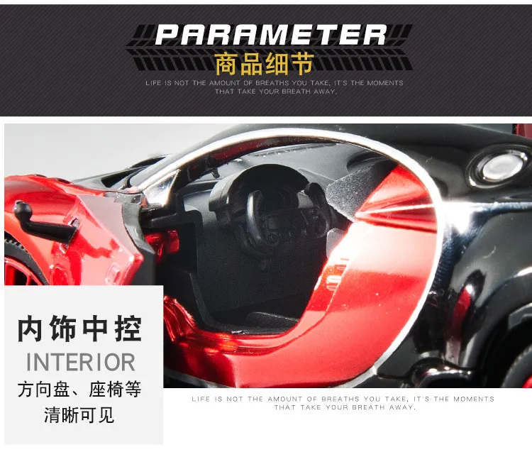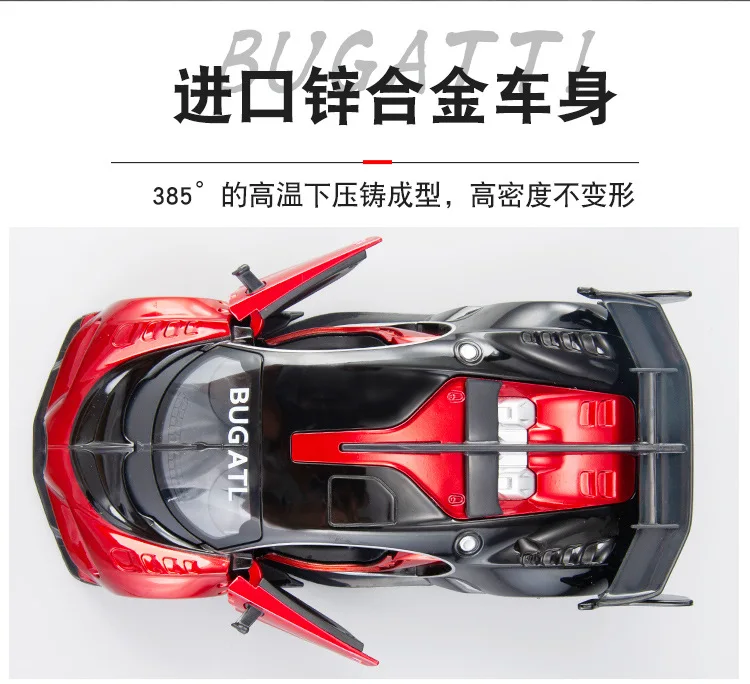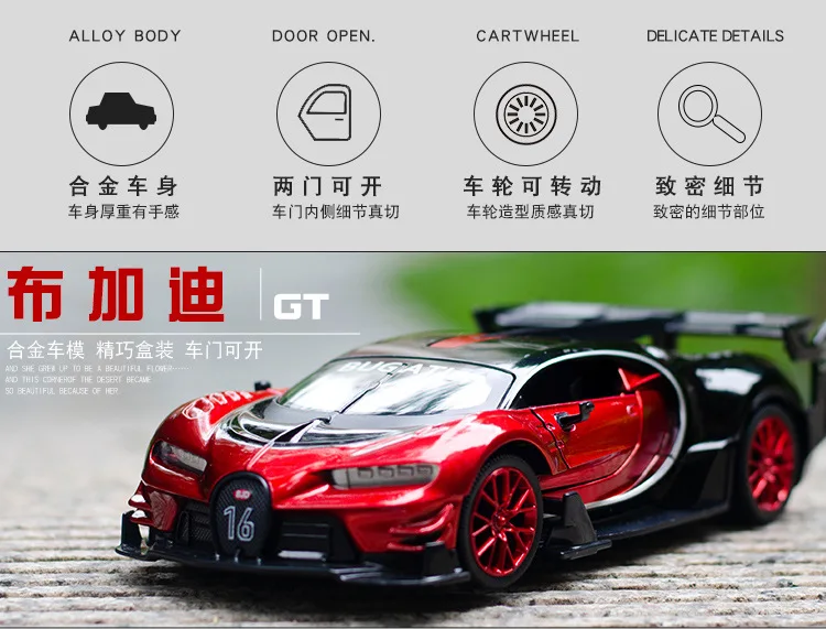 Model Name: Bugatti GT Sports Alloy Car Proportion: 1:24 Size: L20cm * W8.5cm * H5cm Materials: Alloy Color: red,blue Boxed: NO. .Package Includes: 1pc Alloy Car Model (As required by logistics rules, batteries are not included.) Feature: Doors Open,Light on,Sound. Use:Craft Exhibits, Collections, Gifts For Children, etc.