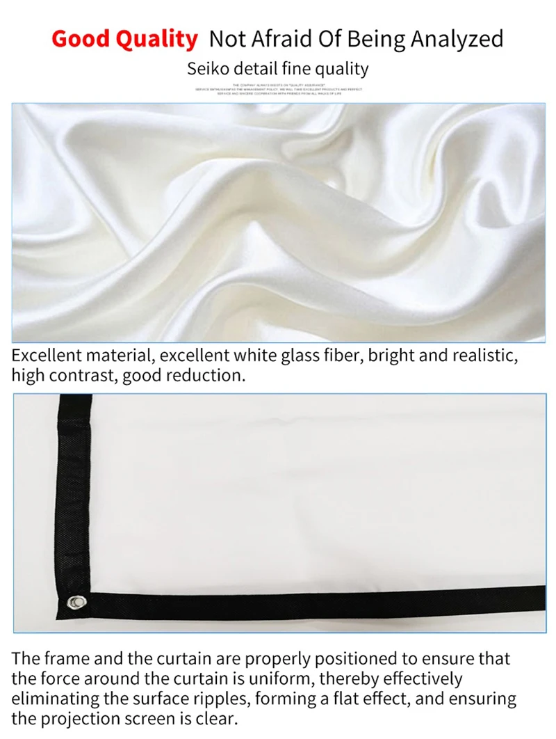 “Wrinkles, Please Go Away!” You don’t need to worry about wrinkles or creases caused by screen folding. Just hang it indoors or outdoors, invite your families or your friends, sharing your joyful time with each other.projector movie screen is brighter than most other projection screens, smooth surface enhance image results. We hope that our high contrast screen and anti-crease material will make everything easier. If there’s dust on it , clean it with wet cloth is recomme