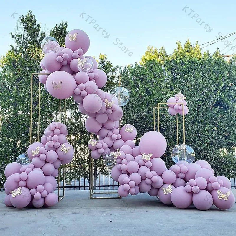 1. Цвет:Macaron фиолетовый, прозрачный воздушный шар, 3D декоративная бабочка, Macaron Baby розовый, матовый белый