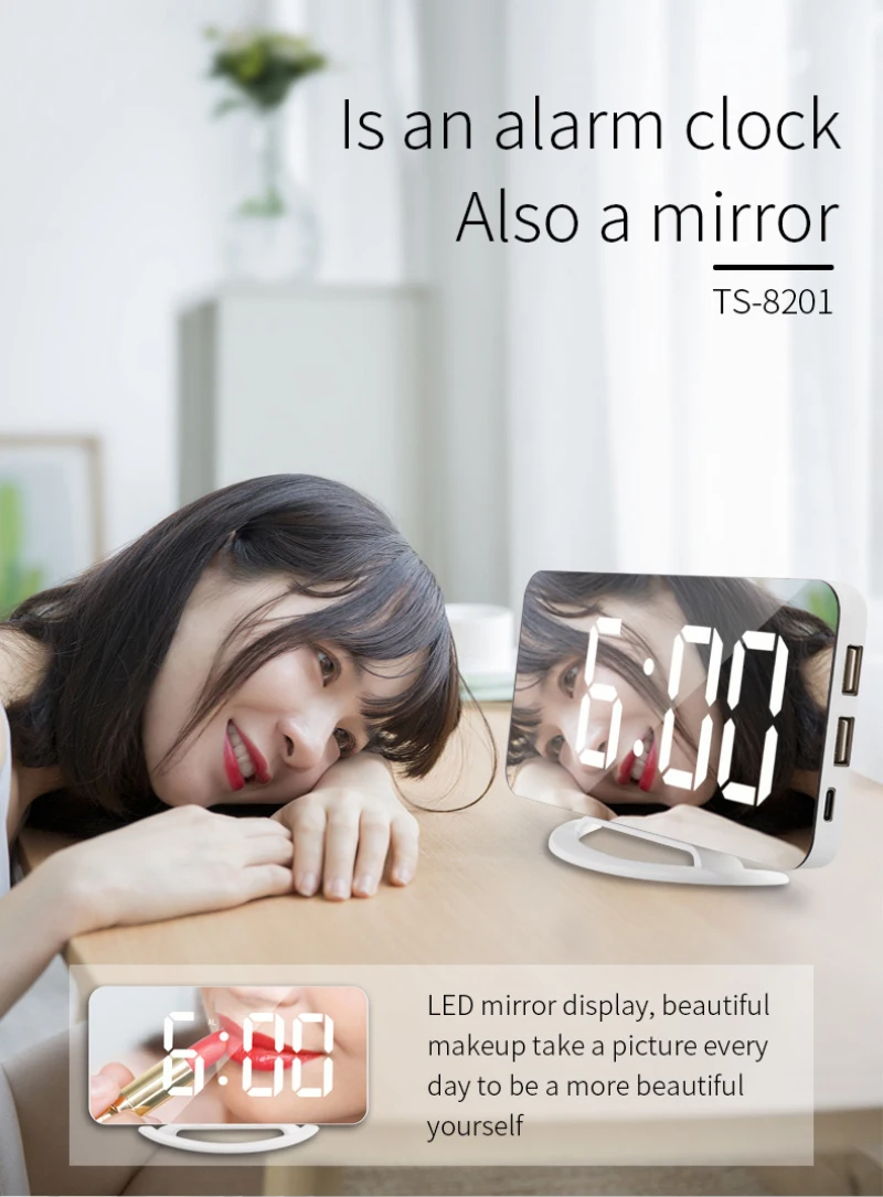 Дизайн зеркала, это будильник и зеркало для макияжа;
