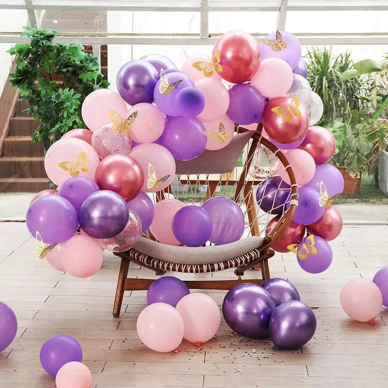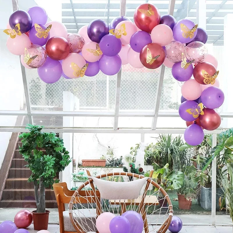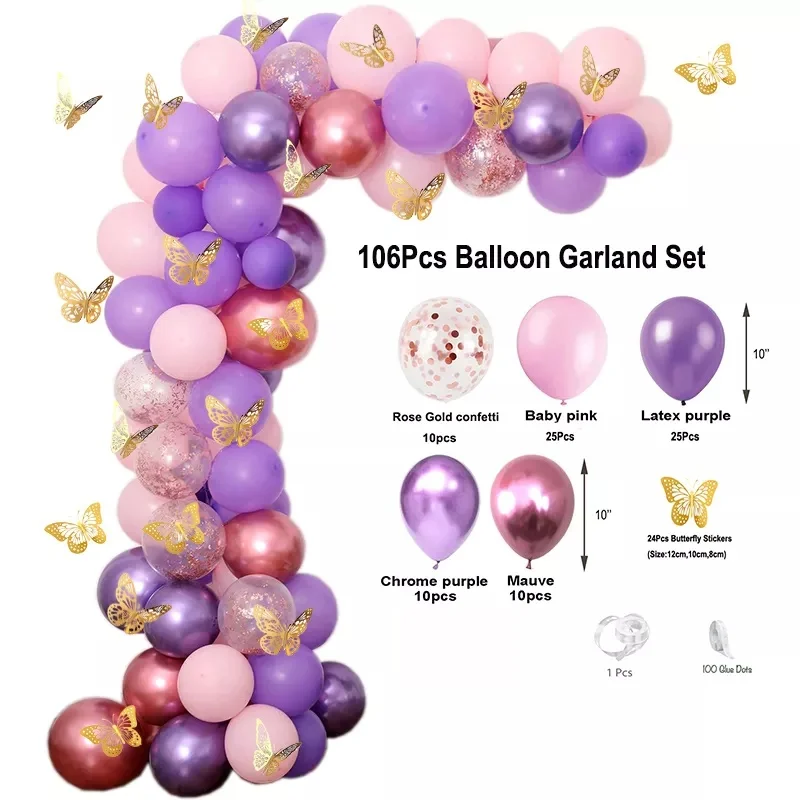 106 шт. пастельные розовые и фиолетовые воздушные шары-гирлянды арочный комплект с золотыми бабочками наклейки для детского душа девушки день рождения Декор