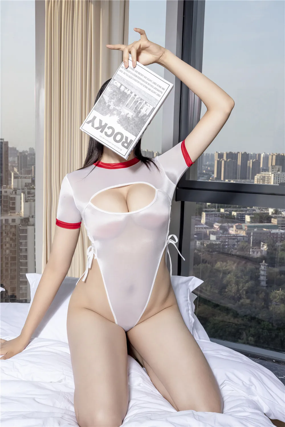 Сексуальные женщины выдалбливают повязку с высоким вырезом боди масло Gloosy блестящие сексуальные обтягивающие