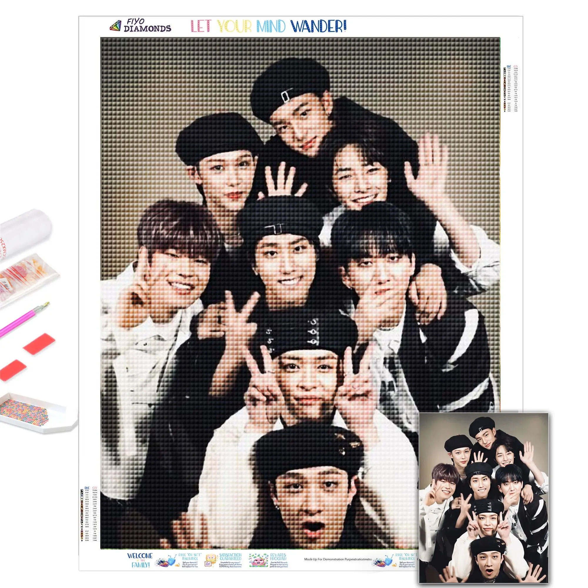 【Площадь сверла】:Полностью квадратная/круглая Алмазная мозаикаKpop бродячих детей