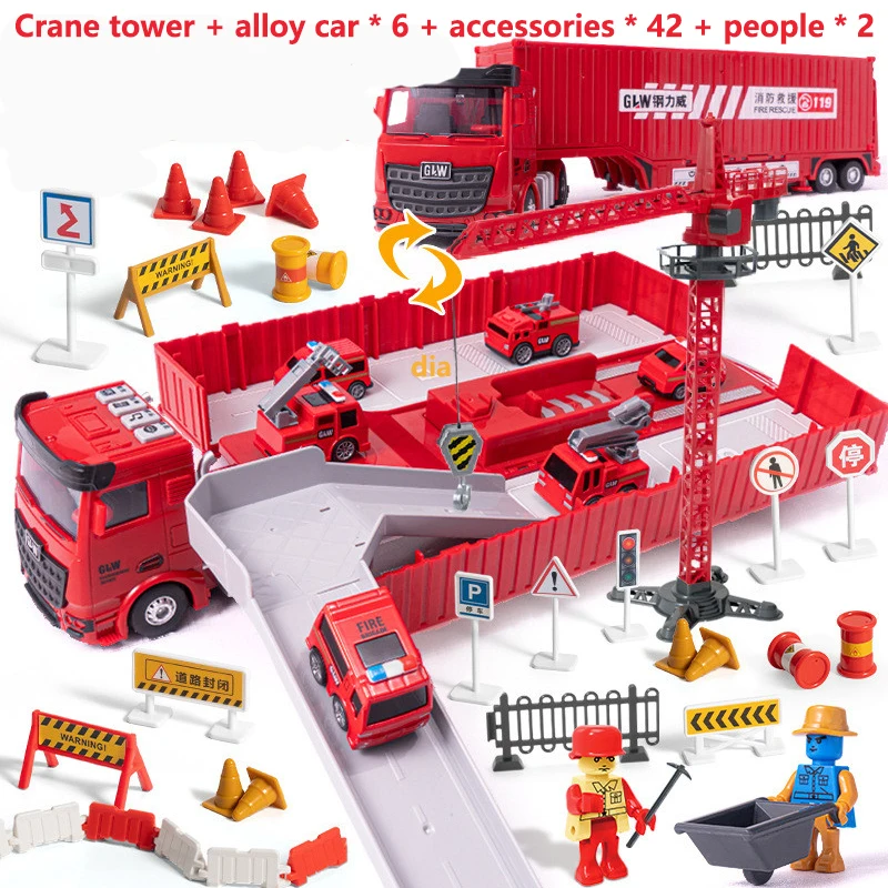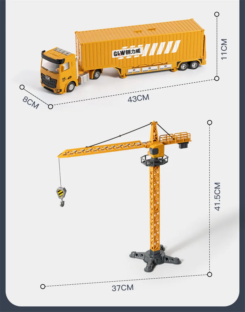 4. Production includes: Crane tower + alloy car * 6 + accessories * 42 + people * 2(With gift box)5. Battery: Power by 3*AA battery (no include)Warning: Not suitable for children under 3 years old