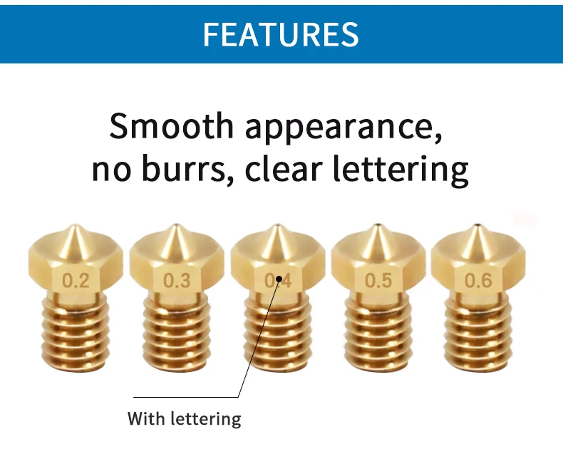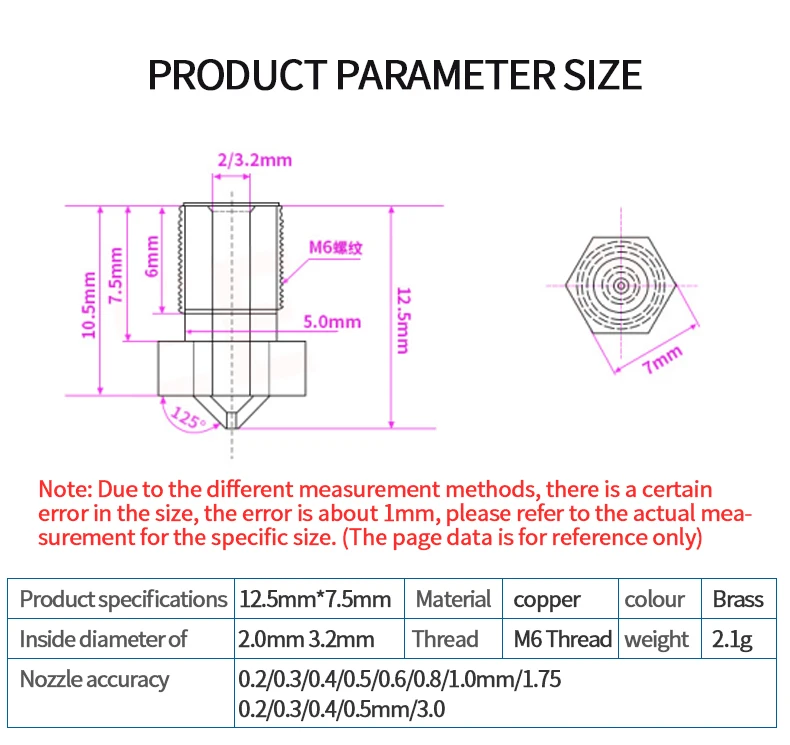●Название: 5 шт. 3D принтер V5 V6 M6 резьбовое медное сопло применяется 1,75 мм и 3,0 мм fliament.