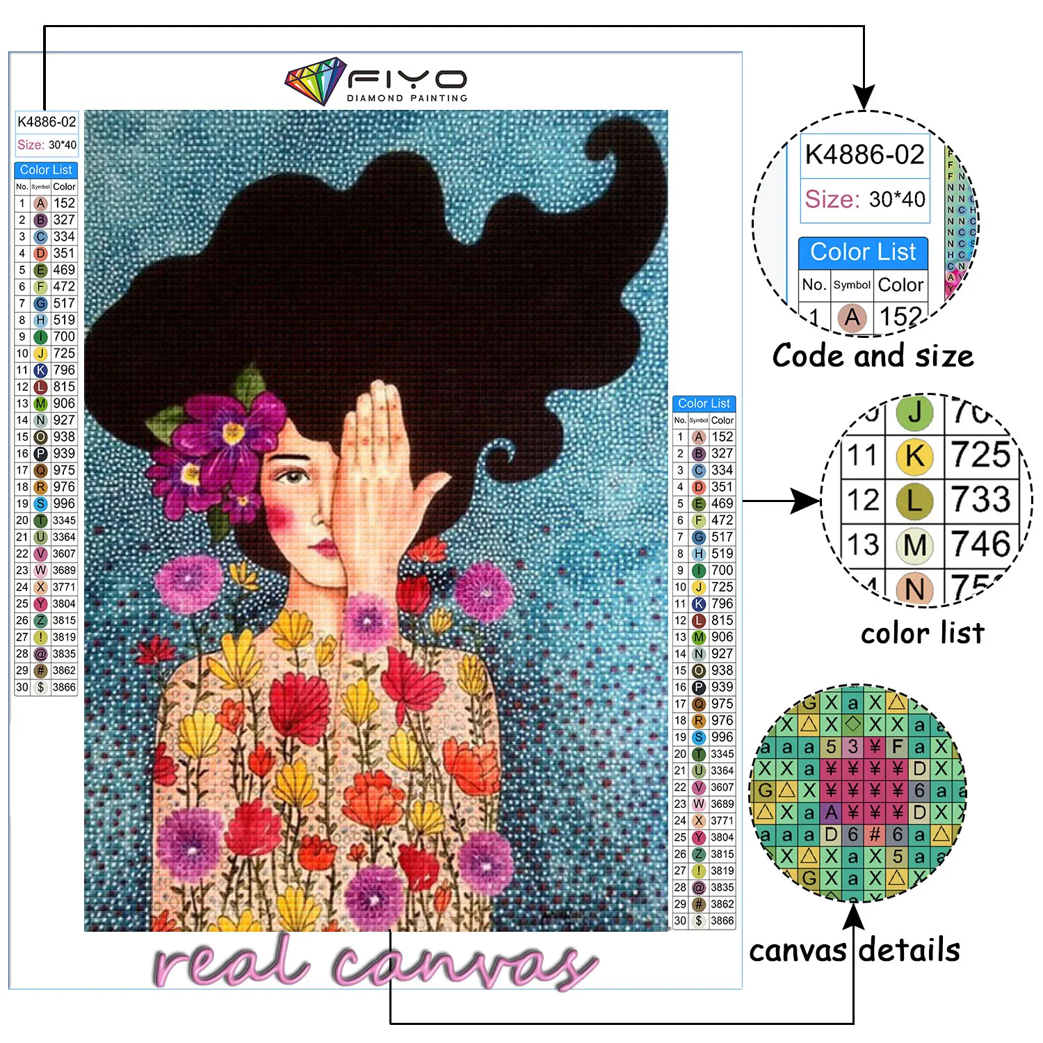 【Площадь сверла】:Полностью квадратная/круглая Алмазная мозаикаВолосы для девочек с абстрактными цветами