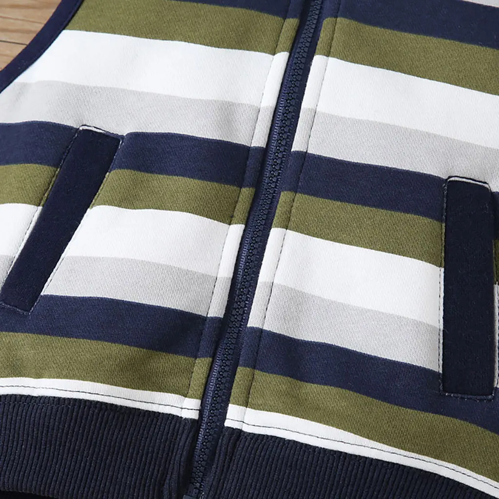 PatPat Baby 3pcs Stripe Zipper Vest Coat and Print Long-sleeve Romper Set