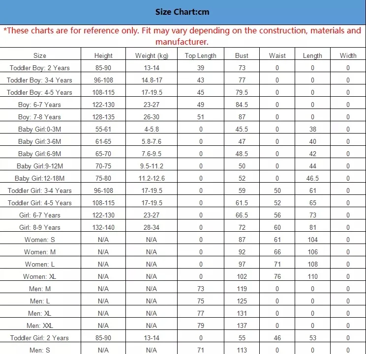 * Каждый размер включает в себя: 2 шт./компл. (комбинезон для ребенка)