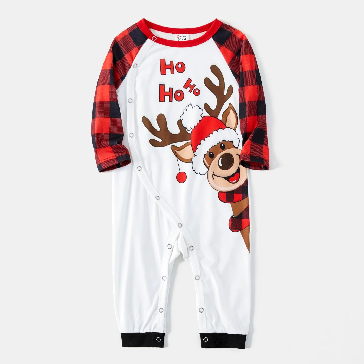 Пижамный комплект в красную клетку с рисунком рождественского оленя и красного цвета с длинными рукавами для всей семьи (огнестойкий)