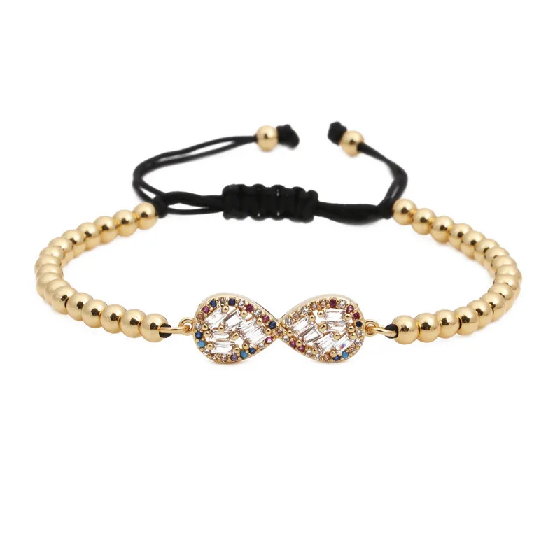 Название:AAA кубический цирконий камни Бесконечность любовь очарование тянуть шнур регулируемый браслет для женщин тренд CZ 4 мм позолоченные медные бусины ювелирные изделия